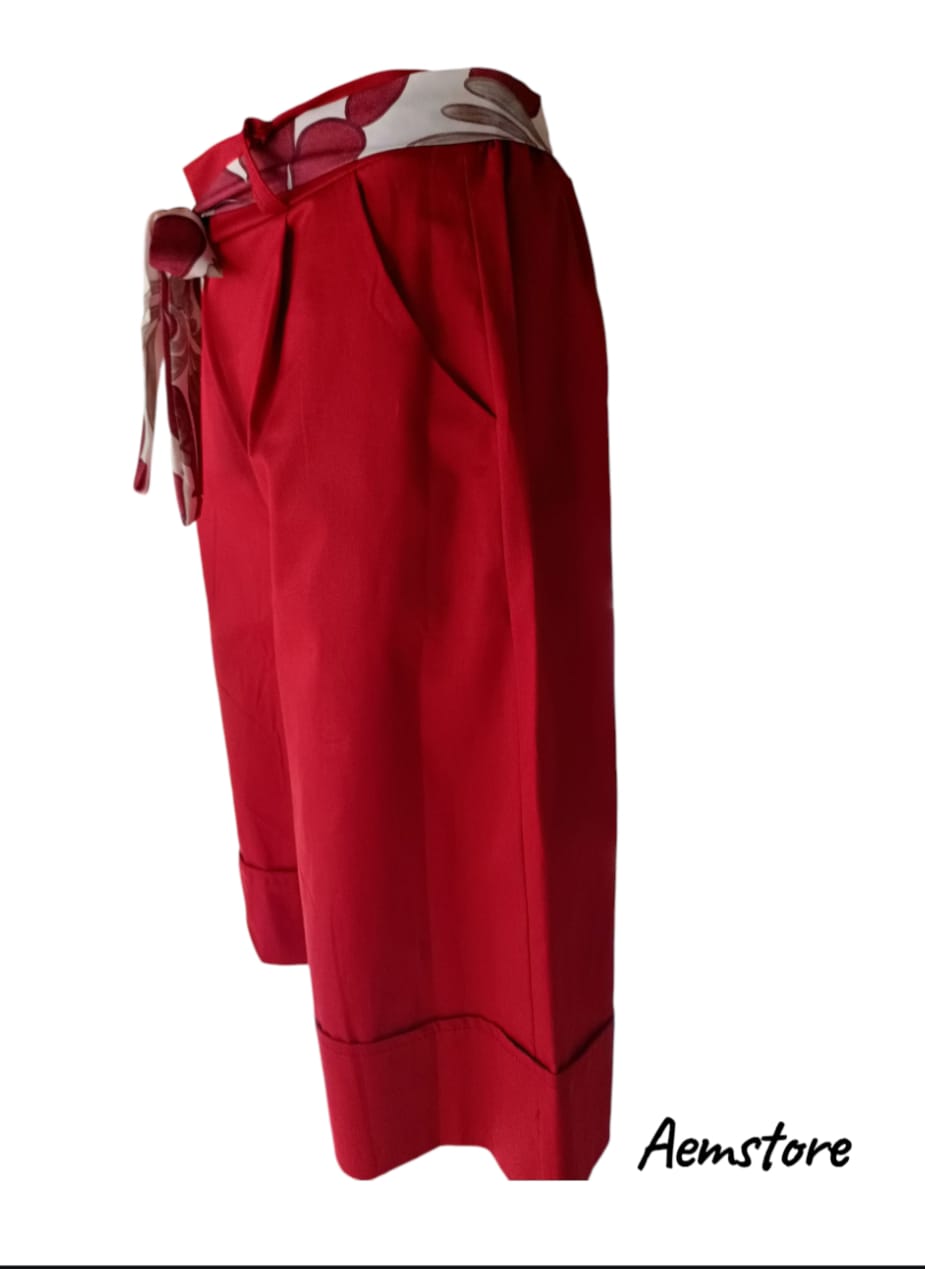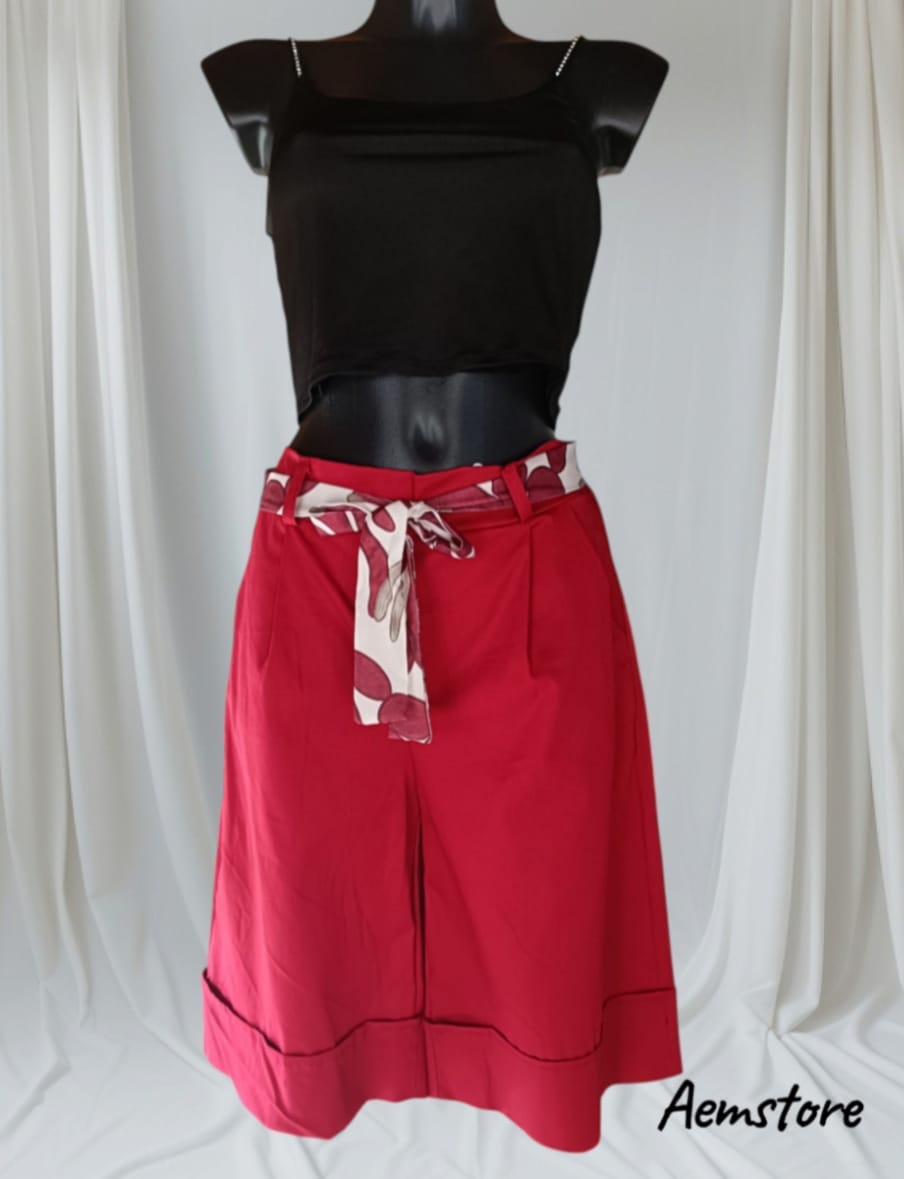 Bermuda Rosso con Cintura Stampata