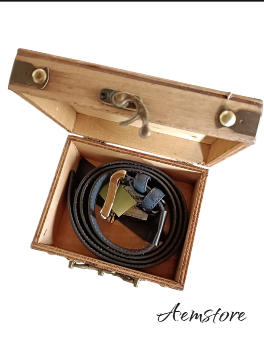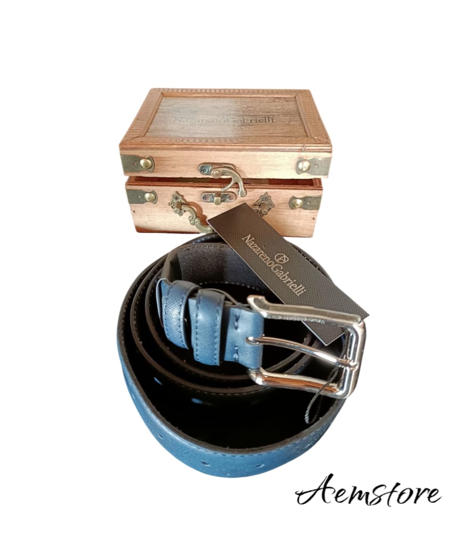 Cintura di colore blu con cofanetto di legno