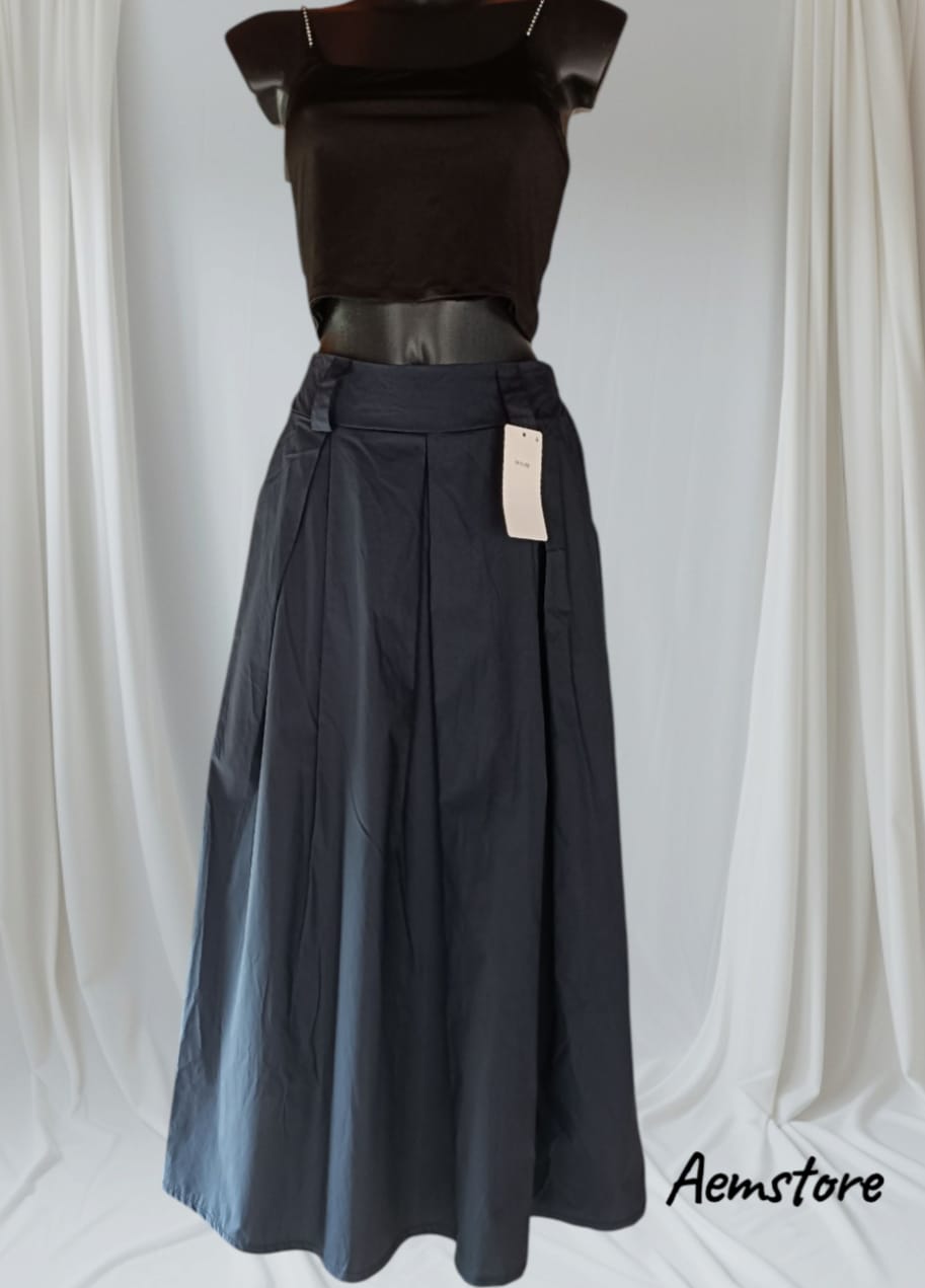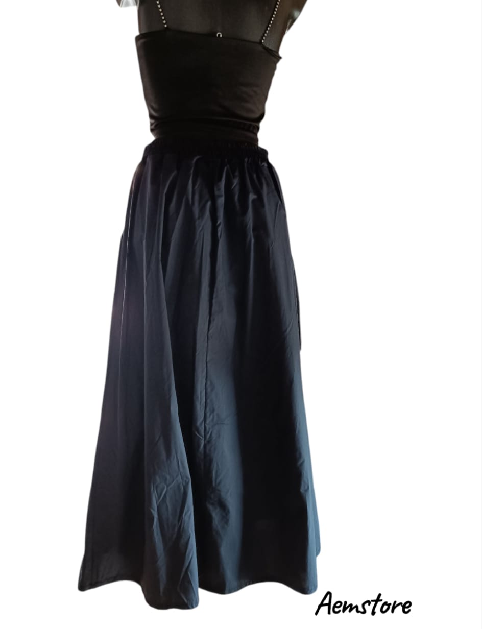 Elegante e versatile, questa gonna lunga è realizzata in 100% cotone italiano, un tessuto naturale che garantisce comfort e traspirabilità in ogni occasione. La linea morbida con pieghe leggere dona movimento e femminilità, mentre la vita alta con passanti la rende perfetta da abbinare sia con top aderenti che con camicie più ampie.